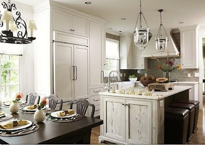 As illustrated in the following images, a white kitchen creates a wonderful backdrop for an elegant dining space. Its classic aesthetic is conducive to a more formal setting, and makes the flow of the room appear naturally seamless.